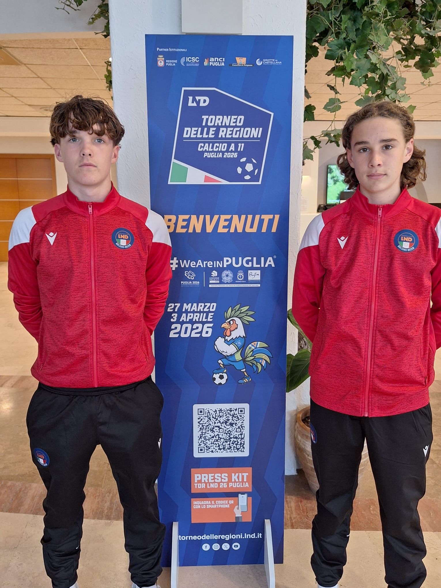 Zwei Spieler unserer SpG Untervinschgau, Moritz Berger und Silas Gurschler (v.l.n.r.), stehen derzeit mit der U-15 Regionalauswahl Südtirols beim Regionenturnier in Apulien auf dem Platz.